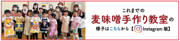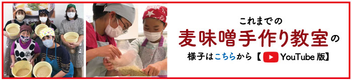 また、前日までのキャンセル等により、人数が満たない場合は麦味噌作り教室を休講とさせて頂く場合がございます。予めご了承ください。