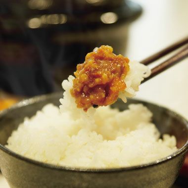 鹿児島黒豚をタップリ使って造りました。ゴロっとした"鹿児島黒豚"を、いつもの麦味噌やまぶきで練り込み、甘辛く仕上げた南国鹿児島ならではの郷土料理です。