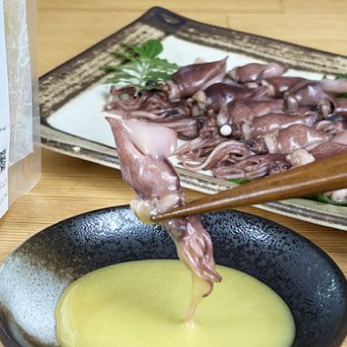 低塩で甘口の米味噌に酢を利かせた、爽やかな酸味が特徴の酢みそです。きびなごの刺身、こんにゃく、茹でたイカやタコ、その他、温野菜にもどうぞ。素材の味が引き立って、手軽に一品出来上がります。